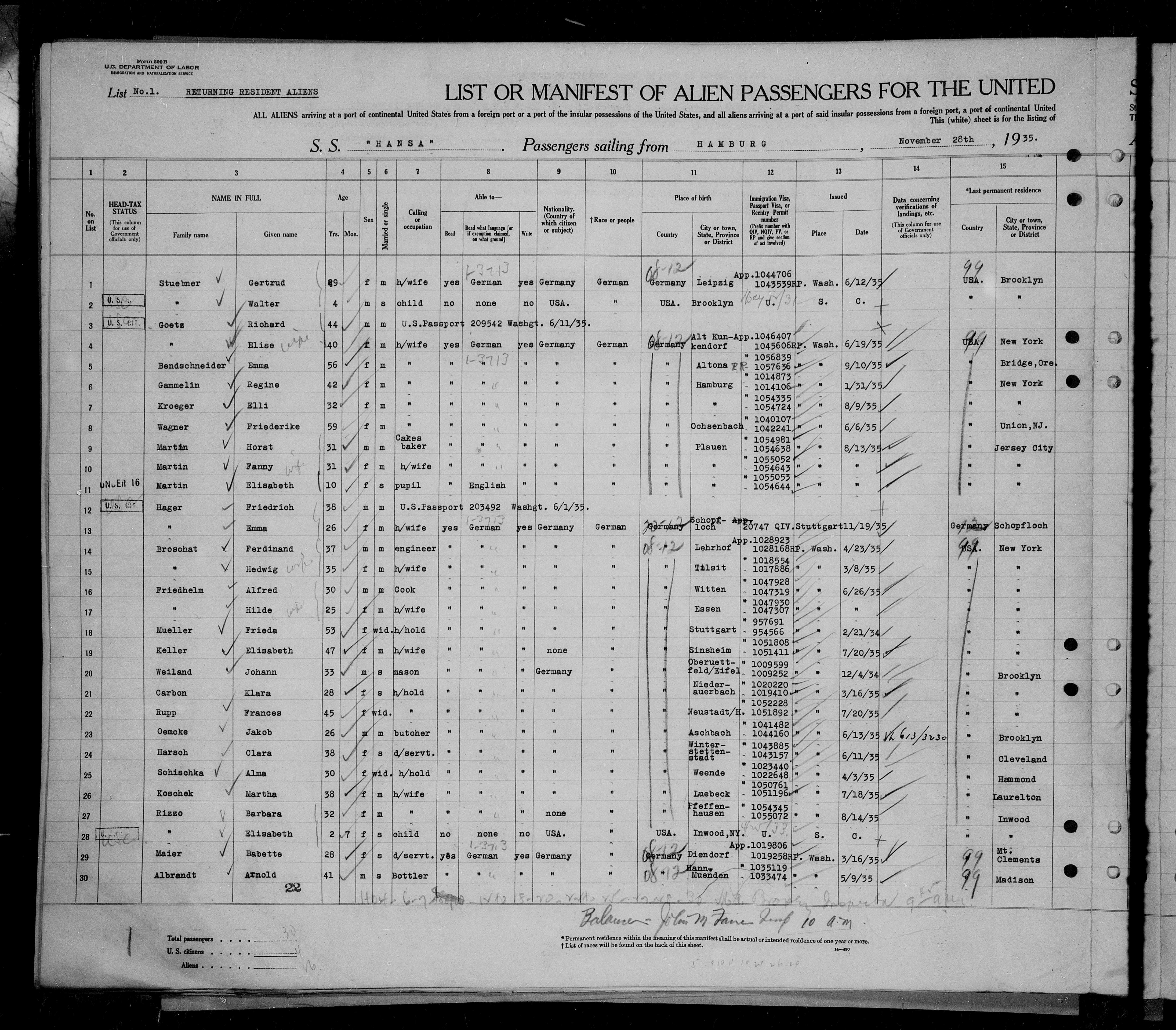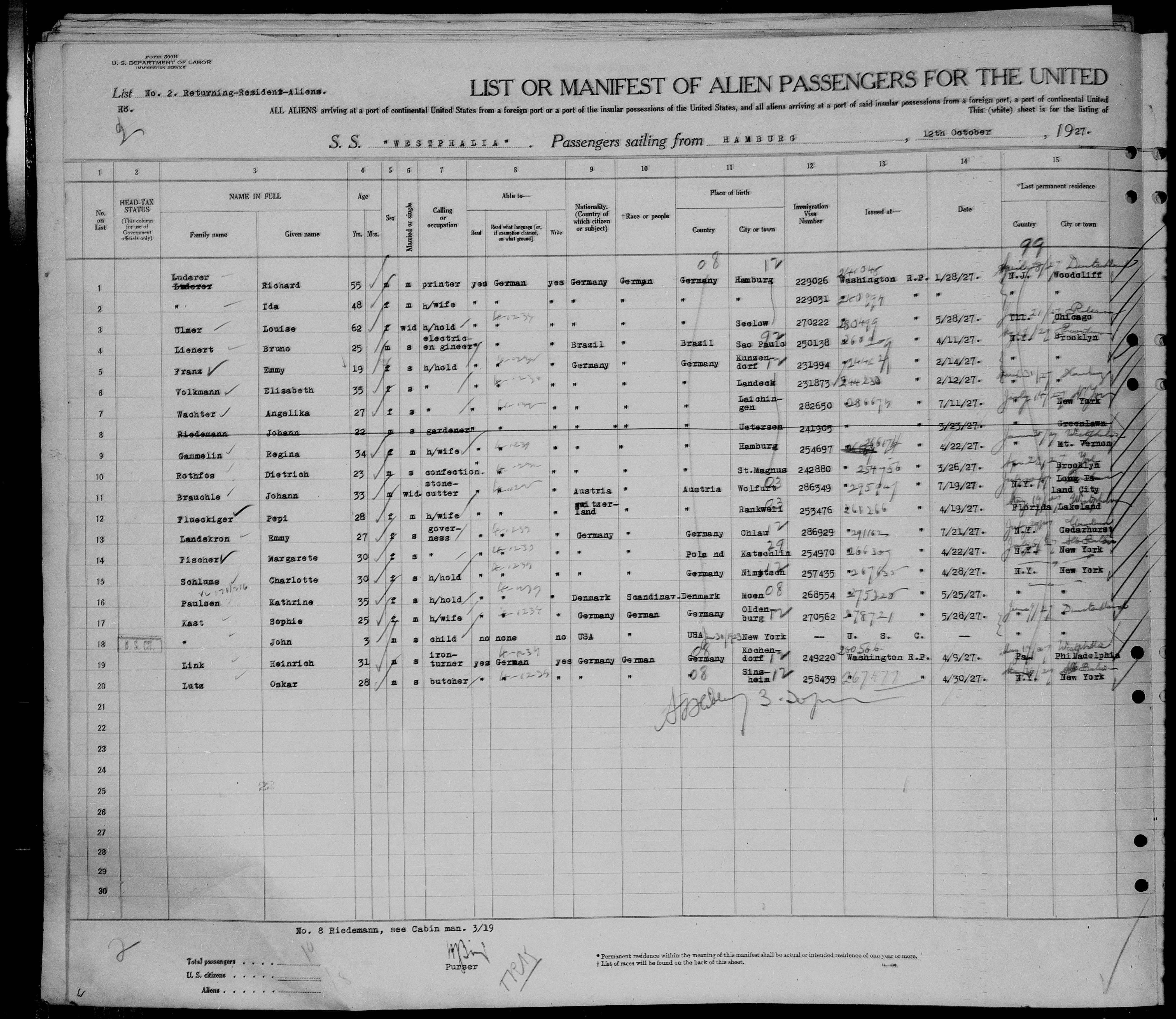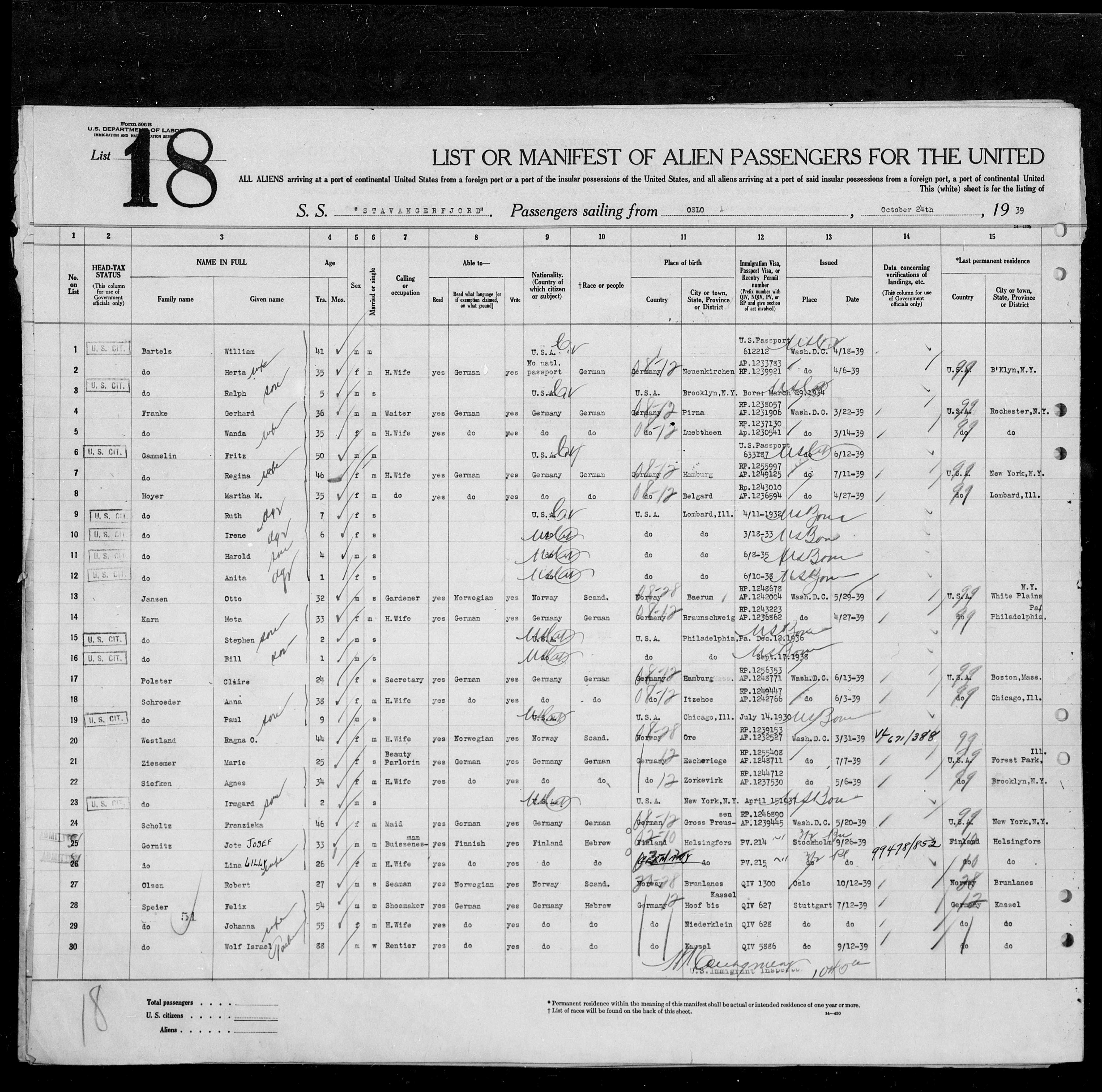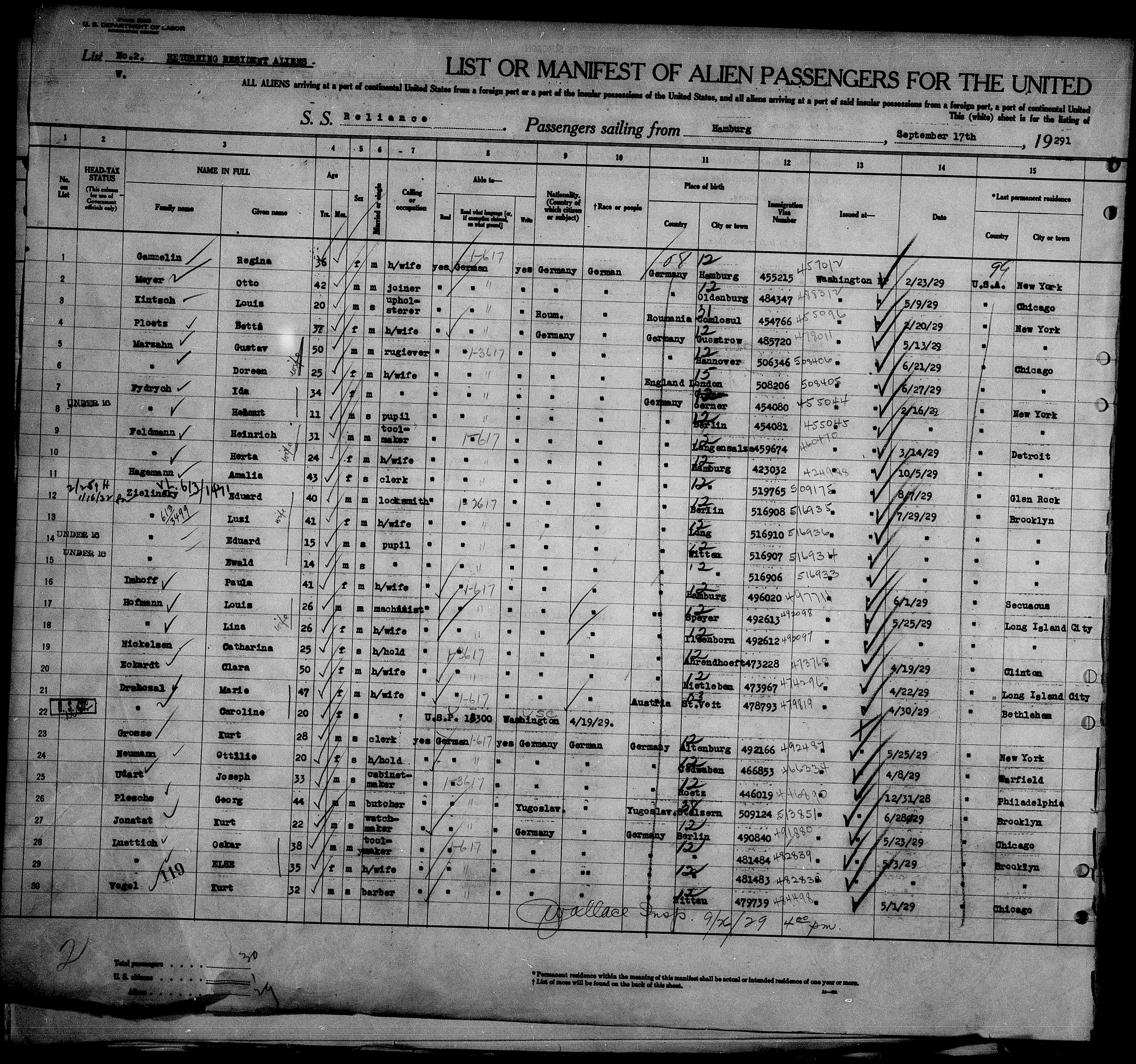 Regine kam erst ein Jahr später in New York an – sie fuhr mit der MS Oscar II von Kopenhagen aus und erreiche New York am 24.12.1924, dem 36. Geburtstag von Fritz.