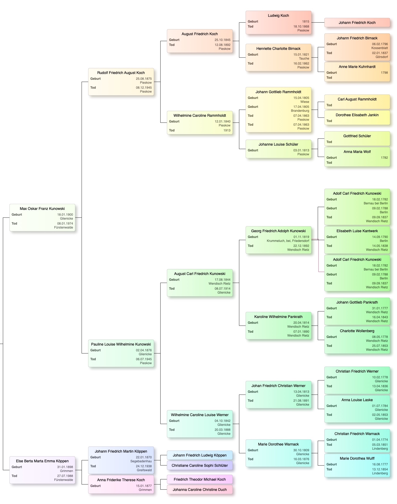 Die Familien Kunowski und Werner aus dem Gebiet um den Scharmützelsee, sowie die Familien Köppen / Koch aus dem Kreis Grimmen